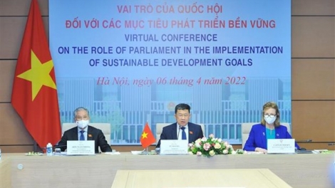 (VOVWORLD) -4月6日,越南国会对外委员会和联合国亚洲及太平洋经济社会委员会、联合国开发计划署、各国议会联盟配合以线上线下结合方式共同举行题为《国会在实现可持续发展目标中的作用》的会议。