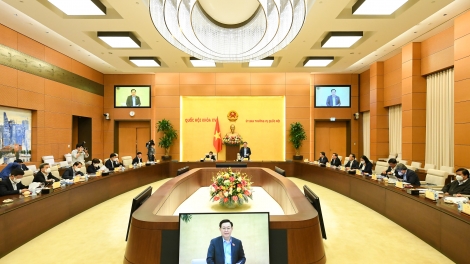 (VOVWORLD) -4月1日下午在国会大厦,越南国会主席王庭惠主持与槟椥省省委领导班子会议,就将该省若干重要计划和项目列入根据国会第43号决议出台的社会经济恢复和发展计划项目清单问题进行讨论。