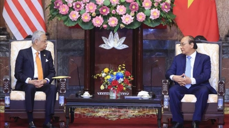 (VOVWORLD) -3月21日下午,越南国家主席阮春福在河内会见正对越南进行正式访问并前来礼节性拜会的马来西亚总理伊斯梅尔·萨布里·雅各布。