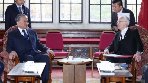 (VOVWORLD) -10月29日,正在英国访问的越共中央总书记苏林在首都伦敦威斯敏斯特宫会见英国上议院议长约翰·麦克福尔和英国下议院议长林赛·霍伊尔(Lindsay Hoyle)。