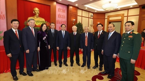 (VOVWORLD) - 适值2022年壬寅传统春节和越南共产党成立92周年之际。越共中央总书记阮富仲1月29日在河内主持见面会,并向革命老干部、党、国家和越南祖国阵线现任和前领导人致以新年祝贺。