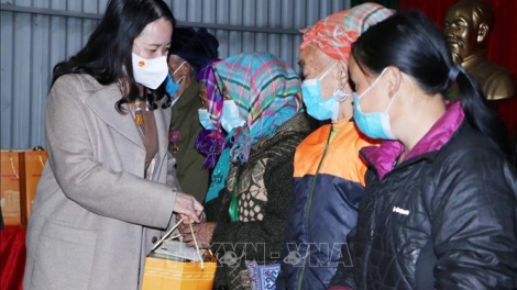 (VOVWORLD) -越南国家副主席武氏映春24日探望并向莱州省风土县陶山边境地区边民赠送礼物。