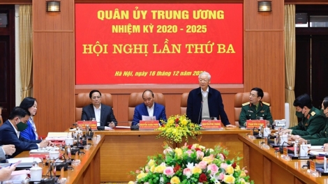 (VOVWORLD) - 2020至2025年任期越共中央军委第三次会议12月16日上午在河内举行。会议讨论并通过2021年国防军事工作总结评估报告,制定2022年国防军事任务落实及军队党委建设等任务的指导方向。