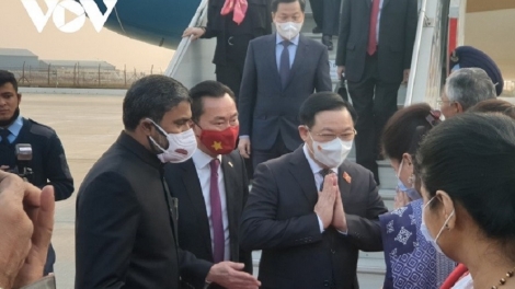 (VOVWORLD) - 越南国会主席王廷惠12月15日下午抵达印度首都新德里帕拉姆军用机场,开始应印度人民院议长奥姆·博拉(Om Birla)和联邦院议长文卡亚·奈杜(Venkaiah Naidu)邀请对印度进行的正式访问。