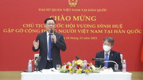 (VOVWORLD) -正对韩国进行正式访问的越南国会主席王庭惠12月14日出席越南驻韩国大使馆驻地揭牌仪式并会见大使馆工作人员和旅居韩国越南人代表。