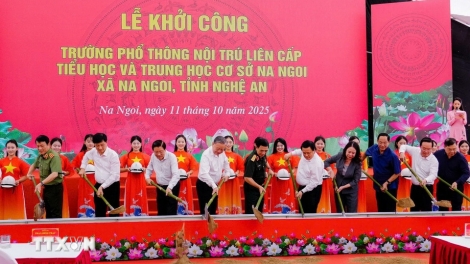 (VOVWORLD) - 10月11日,苏林总书记出席义安省纳义乡纳义跨级寄宿学校奠基仪式。该项目是按照越共中央政治局关于在边境乡投资建设248所中小学跨级寄宿学校的政策实施的。
