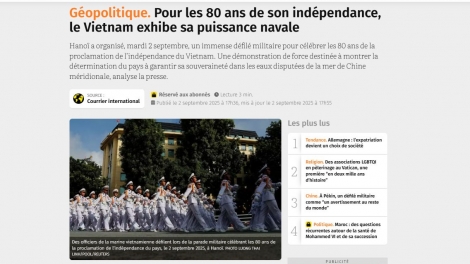 (VOVWORLD) - 据德国几家主要媒体《德新社》和《海登海姆报》(Heidenheimer-Zeitung)报道,越南举行盛大的阅兵式庆祝独立日。此次阅兵式吸引了全国各地数十万民众前往首都河内。持续近3个小时的阅兵式展示了越南海陆空综合国防实力。