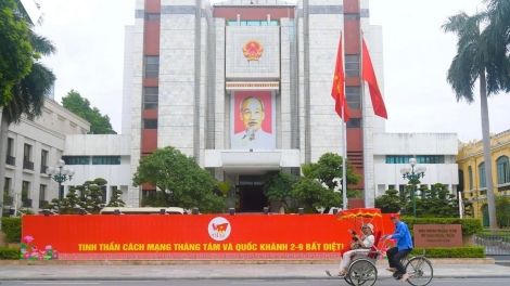 (VOVWORLD) - 连日来,首都河内大街小巷挂满国旗、党旗、横幅、宣传牌、大幅海报等,热烈庆祝八月革命和九二国庆80周年。首都河内仿佛披上了一件光彩夺目的新衣。欢乐的气氛弥漫大街小巷,激起人们的民族自豪感。