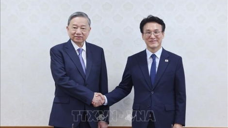 (VOVWORLD) - 8月11日下午,在首尔与韩国总理金民锡会晤时,越共中央总书记苏林强调,他与韩国总统李在明的会谈取得了良好成果。双方就全面推进并深化越韩关系的重要方向和措施达成共识。