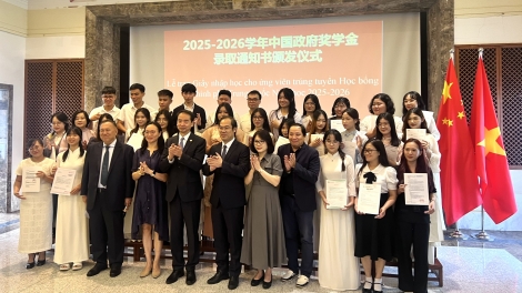(VOVWORLD) - 今天下午,中国驻越南大使馆在河内举行仪式,向34名获得2025-2026学年中国政府奖学金的越南学生颁发录取通知书。