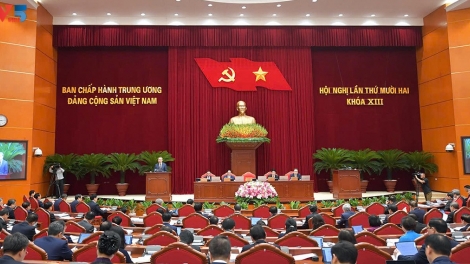 (VOVWORLD) - 7月18日上午,越南共产党第十三届中央委员会第十二次全体会议在首都河内隆重开幕。越共中央总书记苏林主持会议并发表开幕讲话。