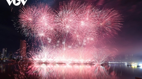 (VOVWORLD) -在岘港韩江畔,2025年国际烟花节第三场比赛于6月14日夜绚丽上演,本场比赛以"连接之旅"为主题,架起了跨文化、跨大洲的梦想之桥。