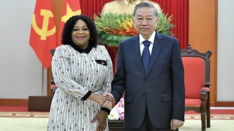 (VOVWORLD) -越共中央总书记苏林5月20日上午在河内会见了于5月17日至22日对越南进行工作访问的南非执政党——非洲人国民大会(ANC)(非国大)第一副秘书长诺姆武拉·莫科尼亚内。