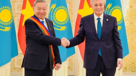 (VOVWORLD) -在对哈萨克斯坦进行国事访问期间,当地时间5月6日下午,越共中央总书记苏林造访哈萨克斯坦总统直属国家行政学院并发表关于越南政策的演讲。