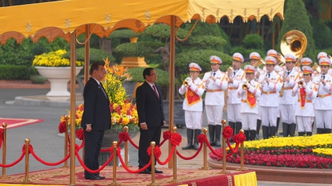 (VOVWORLD) -4月28日上午,越南政府总理范明政在主席府为4月27日至29日对越南进行正式访问的日本首相石破茂夫妇举行欢迎仪式。