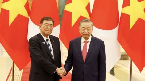 (VOVWORLD) -4月27日下午,越共中央总书记苏林在越共中央驻地会见正对越南进行正式访问的日本自由民主党总裁、日本首相石破茂(Ishiba Shigeru)。
