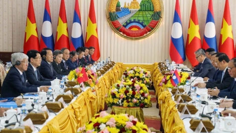 (VOVWORLD) - 越南国家主席梁强对老挝进行正式访问期间,越南国防部部长潘文江大将25日在老挝万象会见老挝国防部长坎良•奥萨宋上将(Khamliang Outhakaysone)。