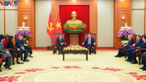 (VOVWORLD) - 访华期间,由越共中央委员、越南祖国阵线中央副主席兼秘书长阮氏秋荷率领的越南祖国阵线中央委员会高级代表团4月24日下午在北京会见了中国全国政协主席王沪宁。