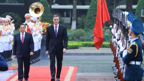 (VOVWORLD) -政府总理范明政4月9日上午在主席府主持仪式,欢迎西班牙首相佩德罗·桑切斯对越南进行正式访问。