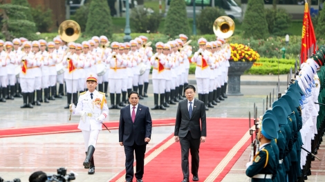 (VOVWORLD) - 越南政府总理范明政3月26日上午在主席府主持仪式,欢迎新加坡总理黄循财及夫人于3月25日至26日对越南进行正式访问。
