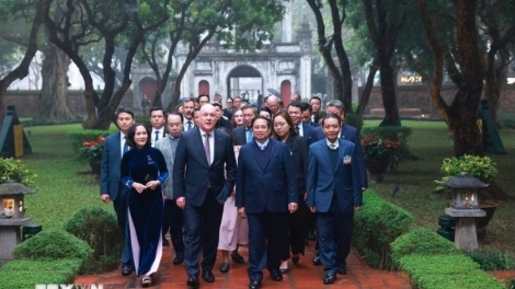 (VOVWORLD) - 范明政总理与拉克森总理交谈时还特别强调越南人民勤奋好学、尊师重教的传统,并表示,越南党和国家始终把教育培训作为第一国策。