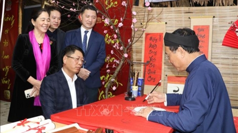 (VOVWORLD) -集市空间展现了年货市场的特色,包括色彩缤纷的摊位、家乡特产,以及书法创作、包粽子、民间游戏等活动,唤起人们对传统春节的记忆。