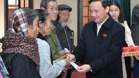 (VOVWORLD) -在乙巳年春节来临之际,1月11日,国会副主席阮克定走访慰问太平省太瑞、前海、东兴三县的贫困户、为国立功者、老年人、边防官兵以及劳动工人, 并向他们赠送慰问品。