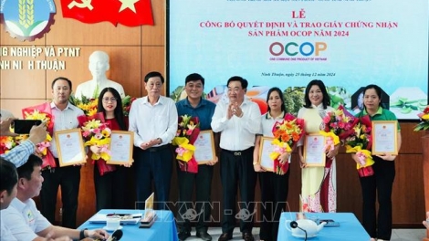 (VOVWORLD) - 12月25日,宁顺省人民委员会向符合省一乡一品(OCOP)标准的7个主体的12种产品颁发了2024年宁顺省一乡一品产品证书。