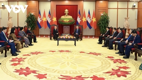 (VOVWORLD) - 越共中央总书记苏林11月28日下午在河内会见正对越南进行国事访问的柬埔寨国王诺罗敦·西哈莫尼(Norodom Sihamoni)。