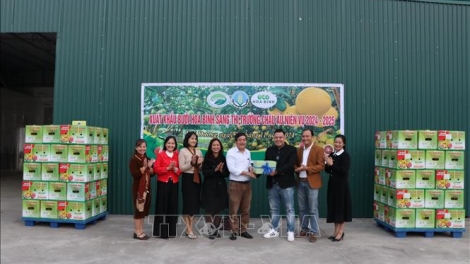 (VOVWORLD) - 和平省农业与农村发展厅、FUSA(伏萨)有机农业股份公司11月28日在海阳省金城县联合举行和平省首批柚子通过海路销往欧洲市场的发布仪式。