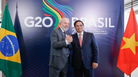 (VOVWORLD) -在巴西里约热内卢出席二十国集团领导人峰会期间,2024年11月17日,越南政府总理范明政与巴西总统路易斯·伊纳西奥·卢拉·达席尔瓦举行了会谈。