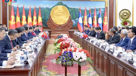 (VOVWORLD) - 2月5日晚,越共中央总书记苏林同越南高级代表团圆满结束应老挝人民革命党中央总书记、国家主席通伦·西苏里邀请,对老挝进行的国事访问。