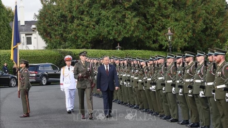(VOVWORLD) - 当地时间10月2日上午11时40分,越共中央总书记、国家主席苏林自10月1日至3日对爱尔兰进行国事访问的正式欢迎仪式在爱尔兰总统府隆重举行。
