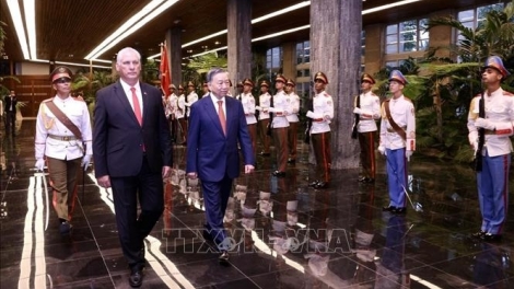 古巴共产党中央委员会第一书记、古巴共和国主席米格尔·迪亚斯-卡内尔·贝穆德斯主持正式欢迎仪式并与越共中央总书记、国家主席苏林举行高层会谈