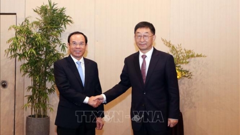 (VOVWORLD) - 8月27日晚,越共中央政治局委员、胡志明市市委书记阮文年会见了广西壮族自治区党委书记、自治区人大常委会主任刘宁。
