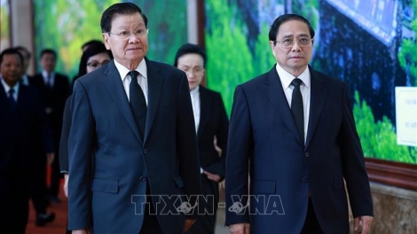 (VOVWORLD) - 越南政府总理范明政7月26日下午在河内会见前来出席阮富仲总书记国葬仪式的老挝人民革命党中央总书记、国家主席通伦·西苏里(Thongloun Sisoulith)和夫人。