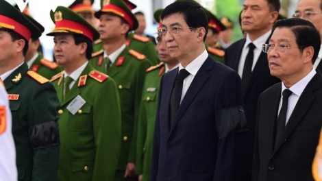 (VOVWORLD) -7月26日下午十五时整,越共中央总书记阮富仲安葬仪式在河内梅驿公墓庄严举行。出席安葬仪式的有国家主席苏林、政府总理范明政、国会主席陈青敏,以及国际贵宾、党和国家前领导人、各机关、团体组织和地方代表。