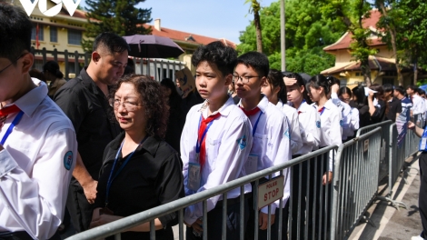 (VOVWORLD) - 7月26日上午,阮富仲总书记吊唁仪式继续自7时至13时同时在河内市陈圣宗街5号国家殡仪馆、胡志明市统一大会堂和阮富仲家乡河内市东英县东会乡举行;记追悼会于13时同时在国家殡仪馆、统一大会堂和东会乡举行;安葬仪式于15时在河内市梅驿公墓举行。