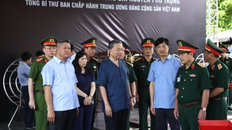 (VOVWORLD) - 越南共产党中央委员会、国会、国家主席、政府、祖国阵线7月25日为阮富仲总书记隆重举行吊唁仪式。越共中央总书记阮富仲治丧委员会由35名同志组成,越共中央政治局委员、国家主席苏林为主任。治丧组委会由27名成员组成,越共中央政治局委员、书记处常务书记梁强办主任。