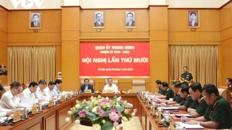 (VOVWORLD) - 中央军委7月8日下午在河内举行第十次会议。越共中央总书记、中央军委书记阮富仲向会议发表指导性讲话。越南国家主席苏林、政府总理总理范明政出席会议并发表讲话。