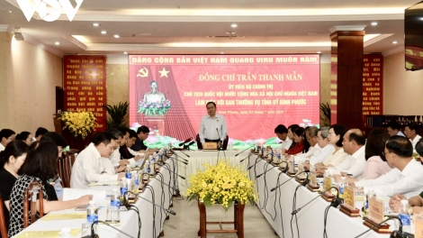 (VOVWORLD) - 在平福省工作期间,国会主席陈青敏3日下午与平福省委常委会就党的十三大决议,国会决议落实情况以及平福省经济社会发展情况举行工作会议。