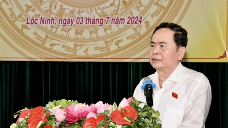 (VOVWORLD) -视察九龙江平原地区和东南部地区各省期间,越南国会主席陈青敏7月3日上午出席了2021-2026年任期平福省人民议会第十五次会议。