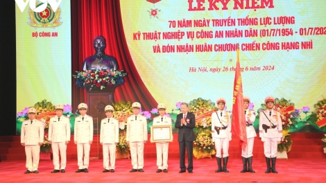 (VOVWORLD) -6月26日上午,越南公安部在河内举行人民公安业务技术力量传统日70周年纪念仪式暨二级战功勋章颁授仪式。