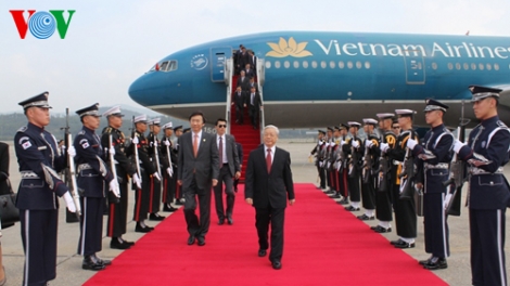 (VOVworld)- 应韩国总统朴槿惠邀请,越共中央总书记阮富仲10月1日开始对韩国进行国事访问。越共中央最高领导人访问韩国体现了两国的高度政治互信,有望在所有领域为两国带来合作新机遇。