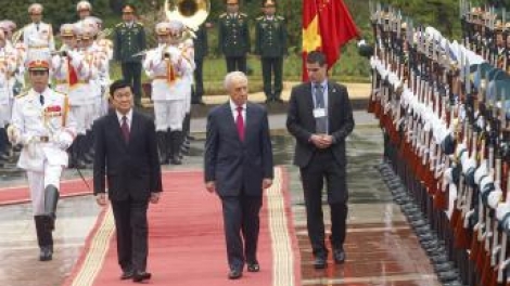 应越南国家主席张晋创的邀请,以色列总统希蒙·佩雷斯23日开始对越南进行为期4天的正式访问。这是两国于1993年建交以来,对越南进行访问的以色列最 高级别领导人。此次访问将为两国多领域,尤其是农业、科技、贸易、投资、旅游等双方优势互补领域的合作带来新机遇。