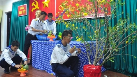 (VOVworld)- 又一个新春降临边远的岛屿,在庆和省长沙县长沙群岛各座暗礁上执行任务的海军战士又一起准备迎接乙未传统春节。除了从大陆送来的牛肉、糯米、黄精叶、酸葱、对联等特产外,今春,驻礁官兵还能自己种蔬菜和准备一些食品,因此既能确保过一个充裕、温暖的春节,还可以紧握手中抢,牢牢守卫祖国的海洋岛屿。