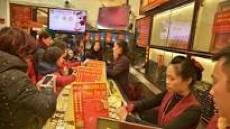 (VOVworld)- 30日,河内多基公司SJC金条价格与前天相比下调1万越盾一两,SJC金条买卖价分别为3649万和3657万越盾一两。河内PNJ公司的金条买卖价分别为3648万和3658万越盾一两,与前天相比同样下调1万越盾一两。