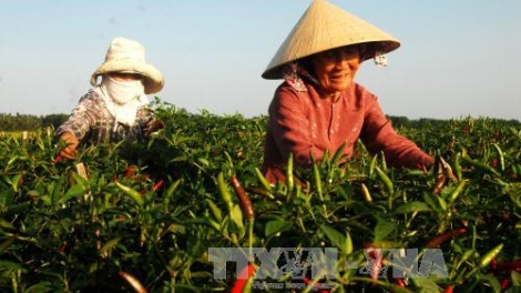 (VOVworld)- 前江省辣椒农正进入收获期,今年辣椒价格较高,农民十分高兴。目前,辣椒价格为7万至7.5万越盾一公斤,比上个月涨了一倍