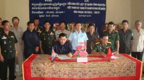 (VOVworld)-13年来,平福省军事指挥部下属在柬埔寨战争时期牺牲的越南志愿军烈士遗骸搜寻队(简称K72队)不顾重重困难到处寻找在柬埔寨牺牲的战友。以越南民族 “饮水思源、吃果不忘种树人” 的传统,K72队指战员找到了在柬埔寨牺牲的2125具越南专家和志愿军烈士遗骸并将他们归葬家乡。