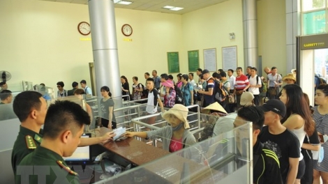 (VOVWORLD) -越南芒街市与中国东兴市6日在两国跨境北仑桥上联合举行越南芒街与中国东兴国际口岸第一千万个过境人员欢迎仪式。